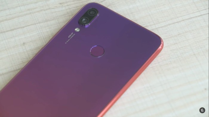 Lebih dekat dengan bodi belakang Redmi Note 7 yang memiliki gradasi warna keunguan. Foto: YouTube/Everything in one