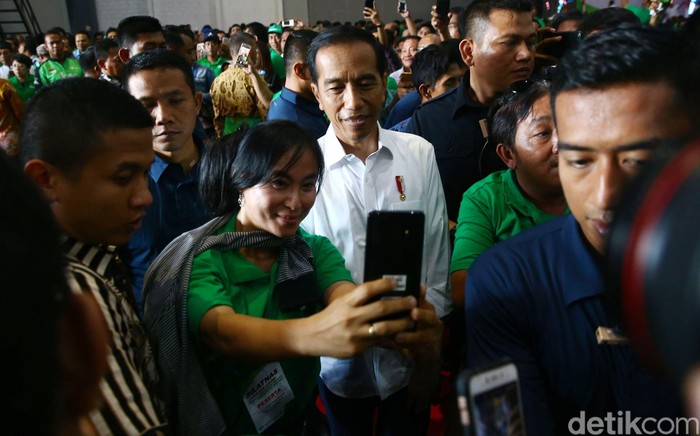 Presiden Joko Widodo (Jokowi) menghadiri acara silaturahmi nasional (Silatnas) pengemudi transportasi online di JIExpo Kemayoran Jakarta, Sabtu (12/1/2019).