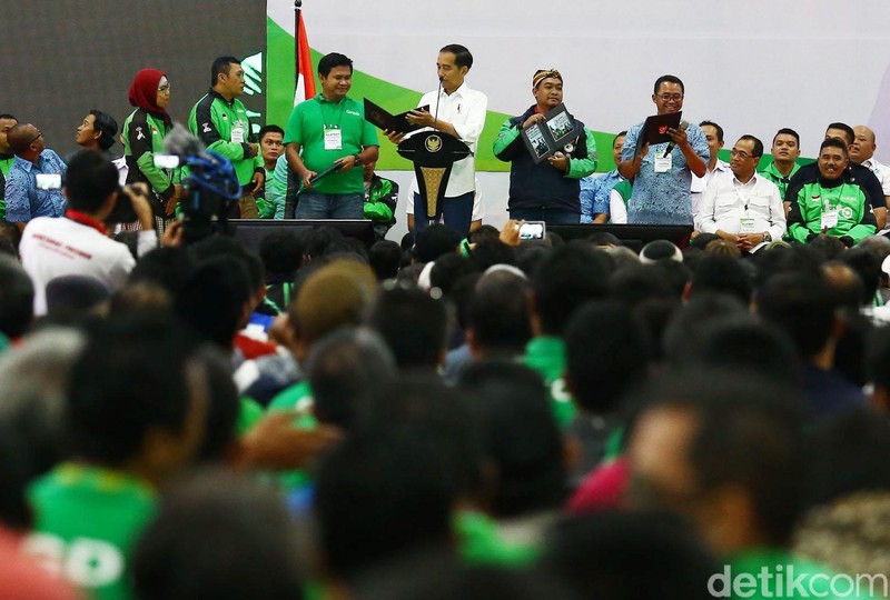 Jokowi mengatakan, pengemudi taksi ataupun ojek online merupakan pekerjaan mulia. Para driver itu menurutnya berani keluar dari zona nyaman.