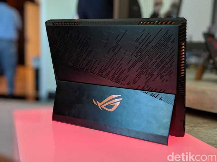Pasalnya ROG Mothership ini mengusung konsep yang sama dengan perangkat besutan Microsoft itu. Terutama soal penyangga bagian belakangnya. Foto: Adi Fida Rahman/detikINET