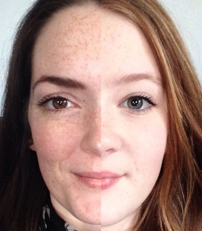 Wanita ini mengambil foto setengah wajah anaknya lalu disatukan dengan wajah miliknya. Ternyata sangat mirip.Β (Foto: Boredpanda)