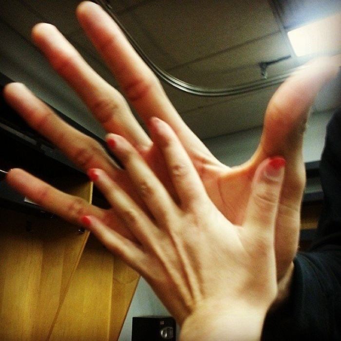 Tangan wanita ini terlihat sangat kecil ketika disatukan dengan tangan pemain bola basket. (Foto: boredpanda)