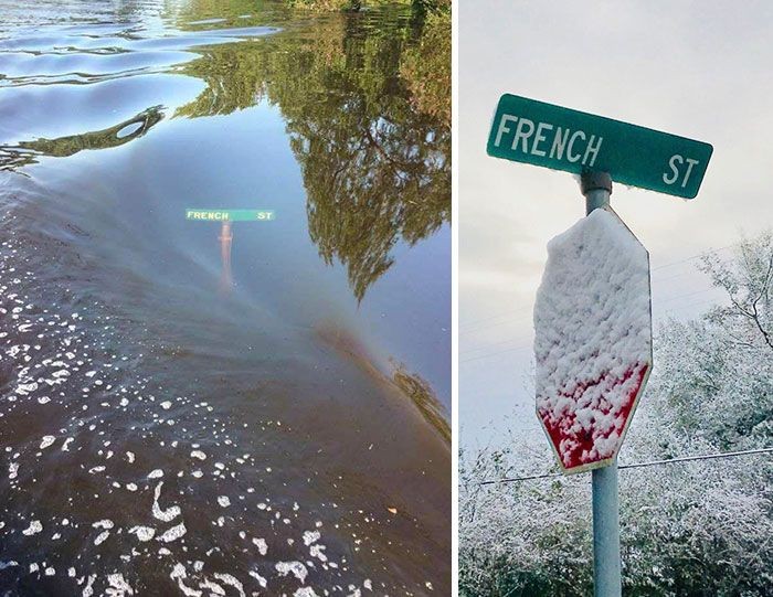 Potret sebuah sudut yang unik di kota di Lumberton, Amerika Serikat. Bisa kebanjiran dan membeku saat musim dingin. (Foto: boredpanda)