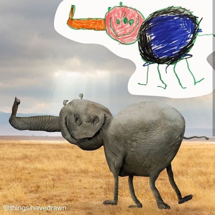 Dalam akunnya, ia membagikan beragam postingan yang menunjukkan gambar bocah yang masih acak-acakan dibuat versi dunia nyata. Foto: Instagram @thingsihavedrawn