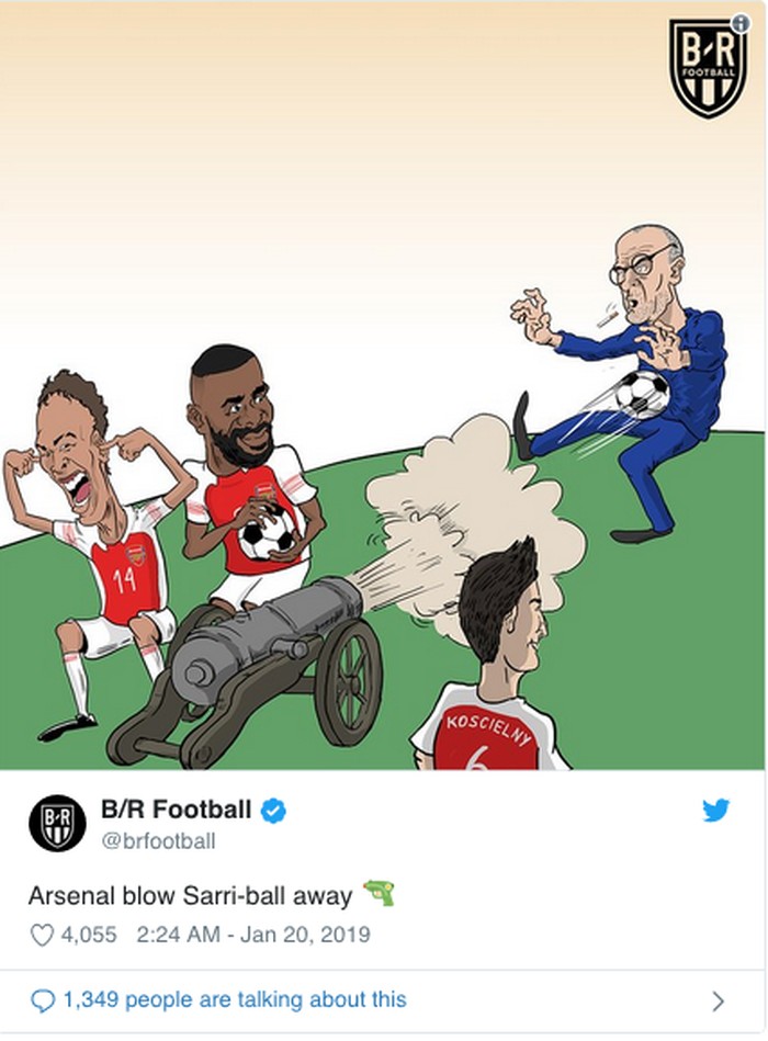 Arsenal menang 2-0 atas Chelsea. The Gunners disebut terlalu cepat untuk The Blues. (Foto: Internet/Twitter)
