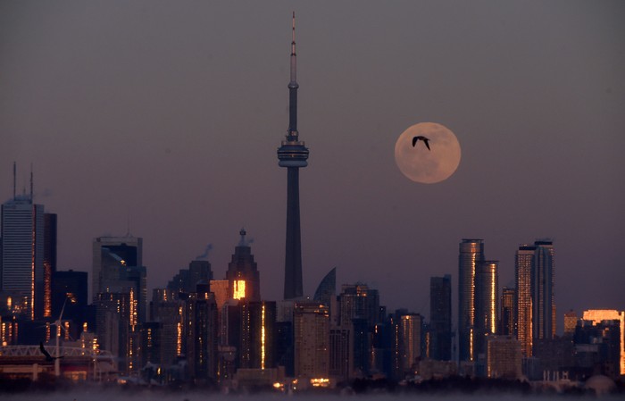 Tampak bulan begitu bundar di atas kota Toronto. Foto: Reuters