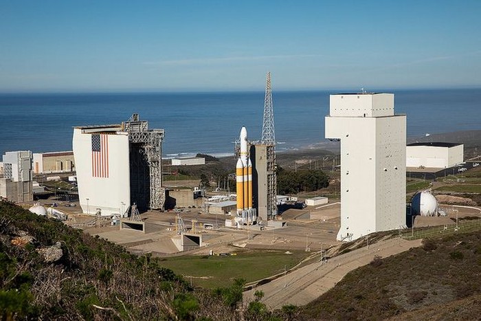 Inilah satelit mata-mata terbaru Amerika Serikat bernama NROL-71 yang digendong oleh roketΒ United Launch Alliance (ULA) Delta IV. Tampak ia sedang dopersiapkan di landasan di Vandenberg Air Force Base di California. Foto: Flickr
