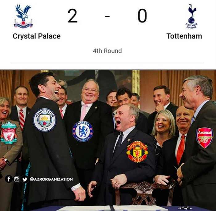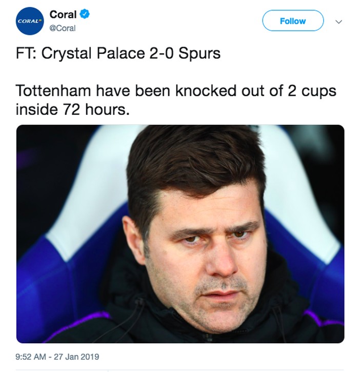 Tottenham Hotspur kembali gagal memanfaatkan peluang meraih trofi setelah kalah 0-2 dari Crystal Palace di babak 4 Piala FA. Netizen pun langsung 'bergerak'.