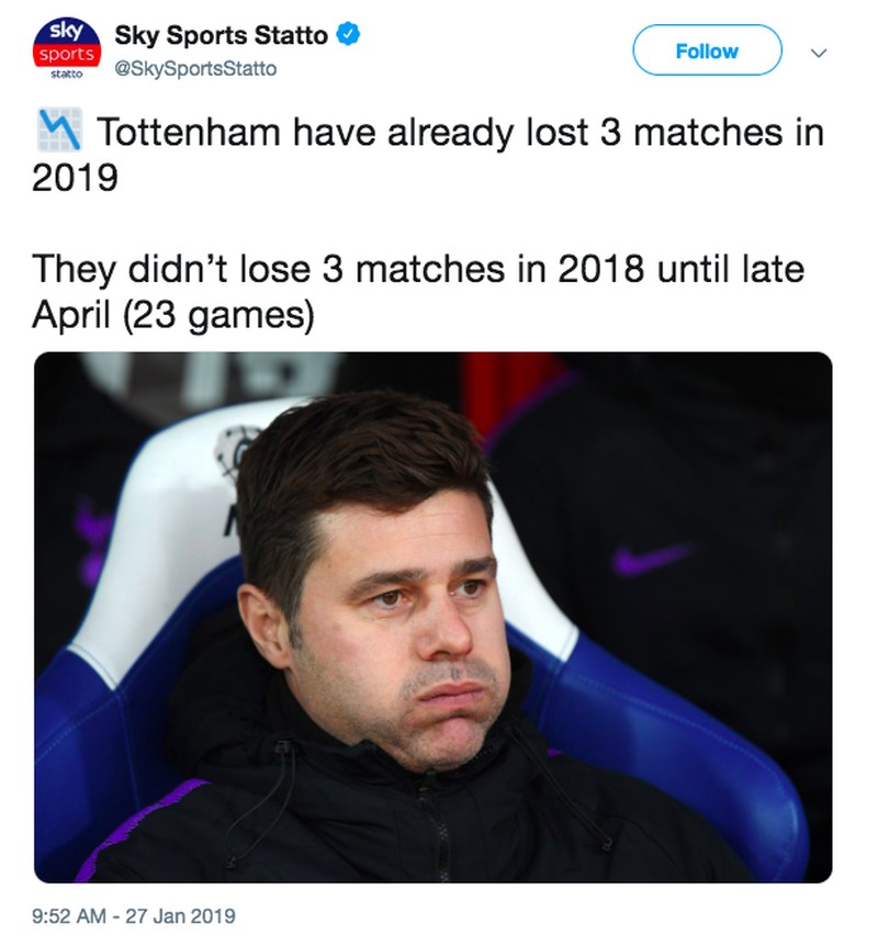 Sudah 3 kali kalah di 2019, pencapaian Tottenham jauh dari tahun lalu. Foto: istimewa