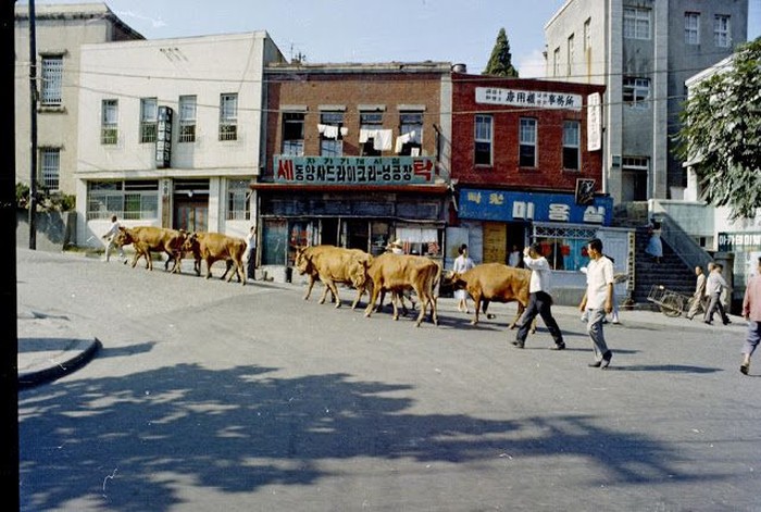 Β Suasana salah satu sudut Seoul tahun 1960-an. Sapi masih menjadi hewan yang bermanfaat untuk transportasi. Foto: Vintages Β