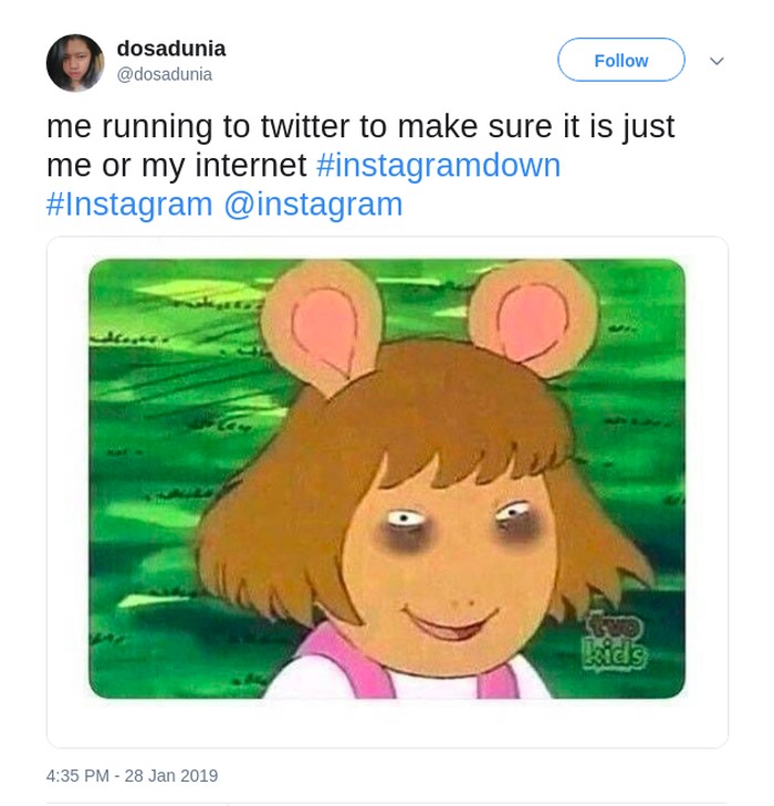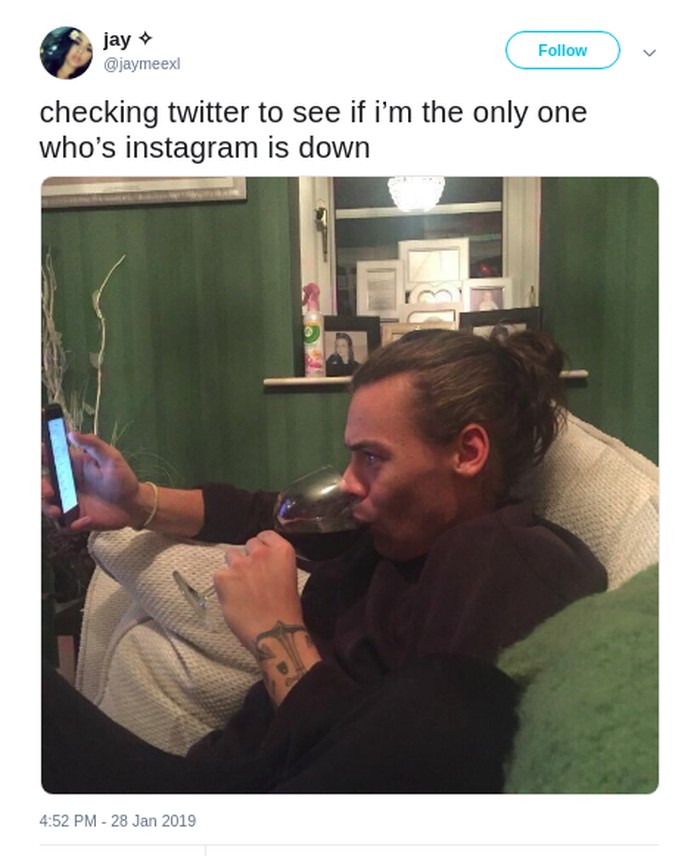 Begini ekspresi ketika kalian mengecek Twitter untuk mengetahui kondisi Instagram terbaru. (Foto: Twitter)