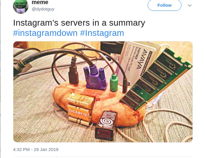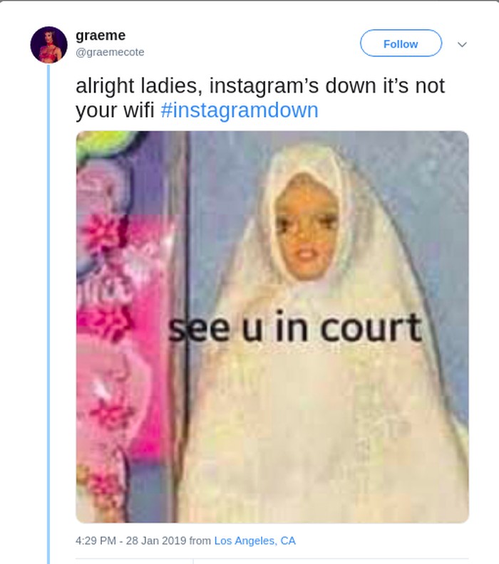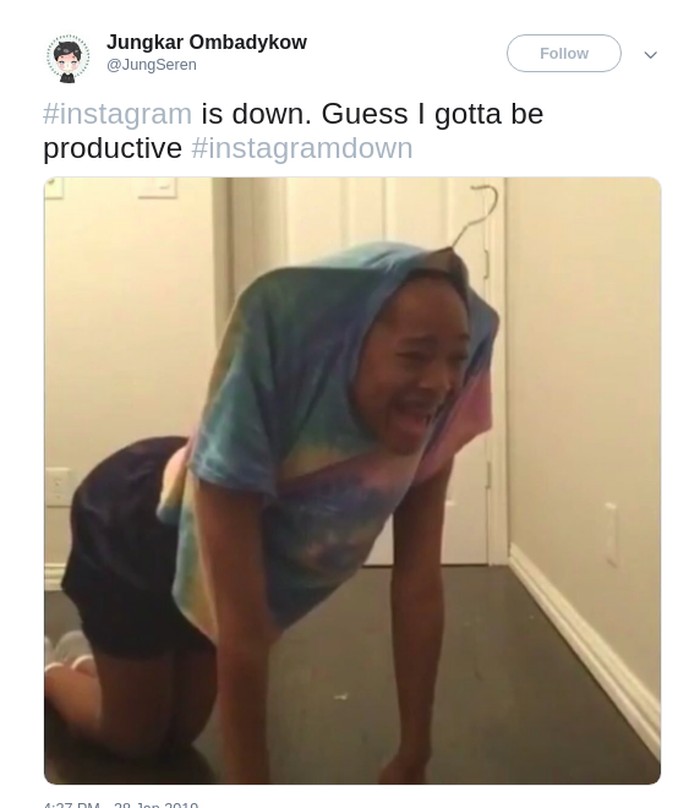 Instagram down, harus lebih produktif. (Foto: Twitter)