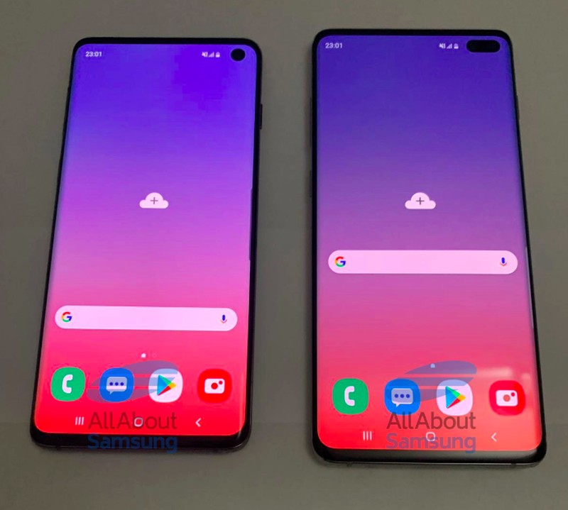 Galaxy S10 ini mengusung layar 6,1 inch dan Galaxy S10+ kabarnya memakai layar 6,4 inch. Bisa dilihat di bagian depan yang mencolok adalah kameranya memakai gaya Infinity O alias tertanam di layar. Kamera depan Galaxy S10 tunggal sedangkan Galaxy S10+ ganda. Foto: Sammobile