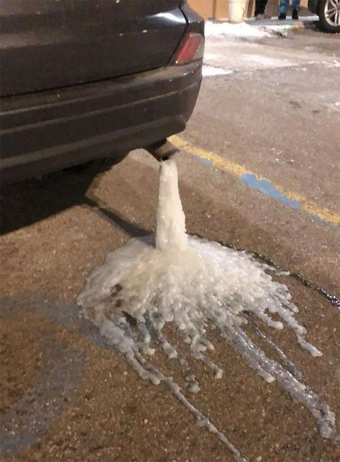 Air dari mobil pun menjadi es. Foto: boredpanda