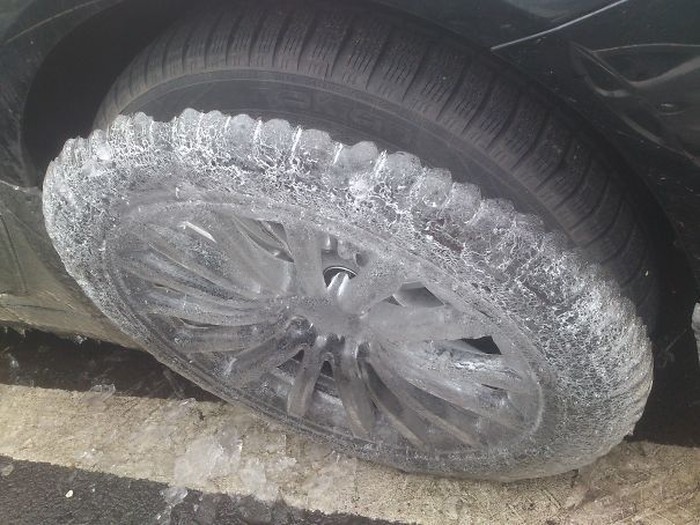 Dua hari ditinggal di luar, mobil netizen ini rodanya tertutup es. Foto: boredpanda
