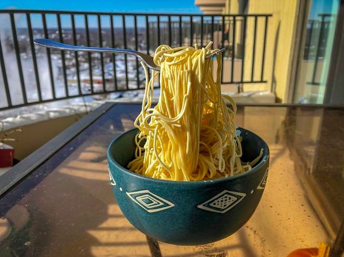 Mie juga membeku tak dapat melawan hawa dingin. Foto: boredpanda