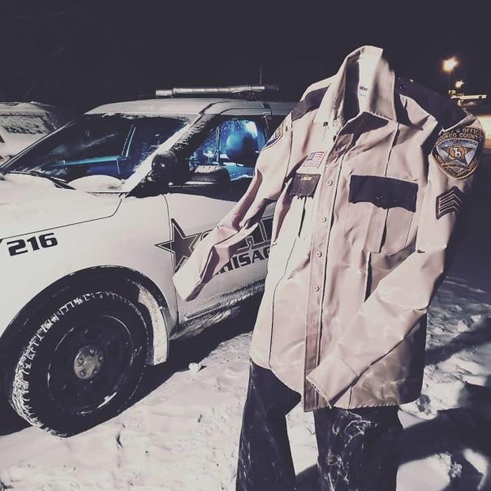 Seragam polisi tegak berdiri. Foto: boredpanda