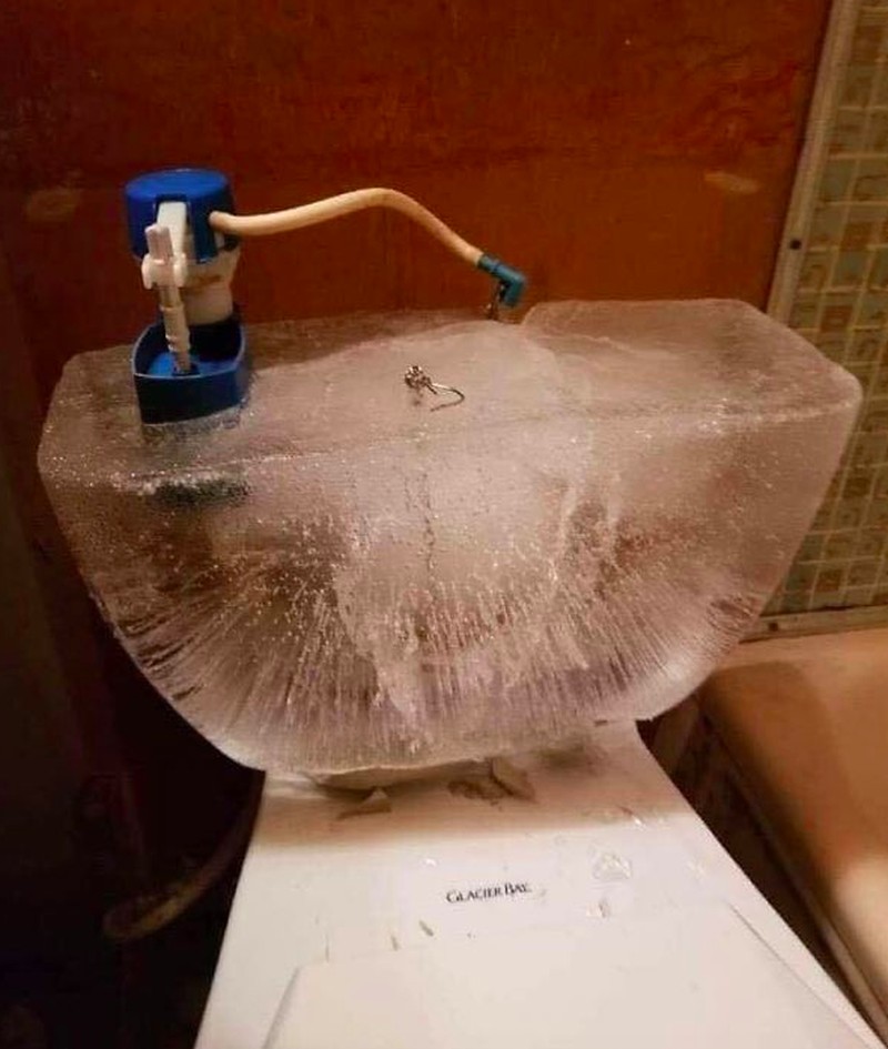 Air di kloset membeku dan merusak lapisan luar. Foto: boredpanda