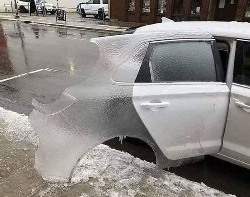 Air dari mobil pun menjadi es. Foto: boredpanda
