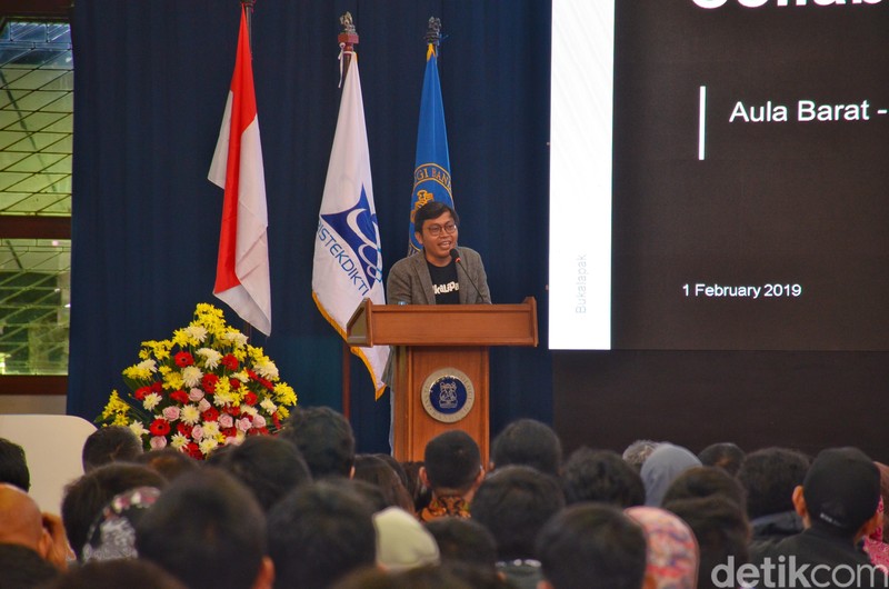 "Kami sediakan tempat, hibahkan data sehingga mahasiswa bisa riset langsung. Ada server, intinya jadi fasilitas ini bisa dipakai untuk riset sehingga lebih kaya dan talenta kita (dari Bukalapak) transfer knowledge," kata CEO Bukalapak Achmad Zaky. Foto: Satria Nandha/detikcom