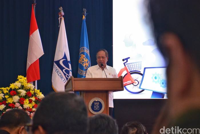 Menteri Riset Teknologi dan Pendidikan Tinggi Mohamad Nasir secara langsung meresmikan laboratorium riset tersebut, di Aula Barat ITB, Kampus ITB, Jalan Ganesha, Kota Bandung, Jumat (1/2/2019). Dalam acara itu hadir juga Rektor ITB Kadarsah Suryadi, CEO sekaligus founder Bukalapak Achmad Zaky.Β Foto: Satria Nandha/detikcom