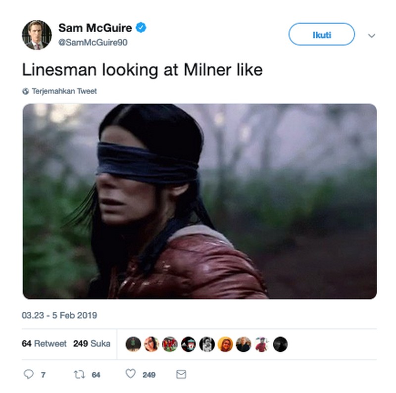 Hakim garisnya dianggap seperti Sandra Bullock di Bird Box. (Foto: Internet/Twitter)