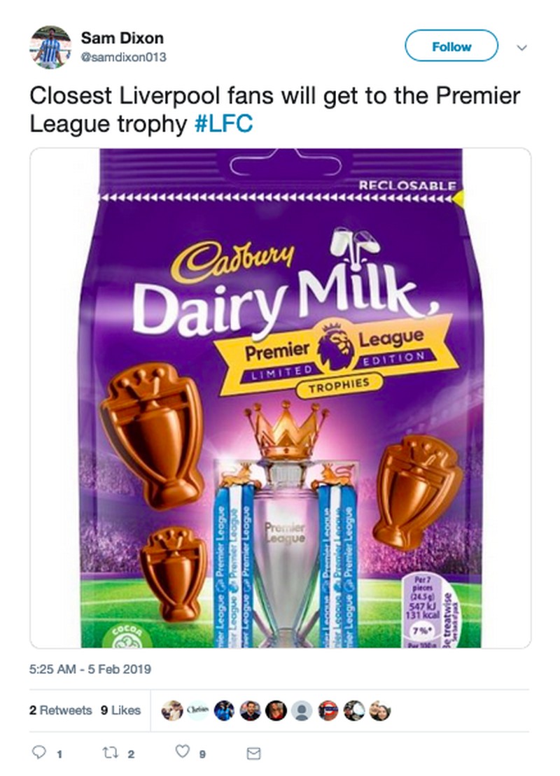 Liverpool dianggap takkan mampu menjuarai Liga Inggris. Peluang memegang piala cuma akan didapat lewat coklat. (Foto: Internet/Twitter)