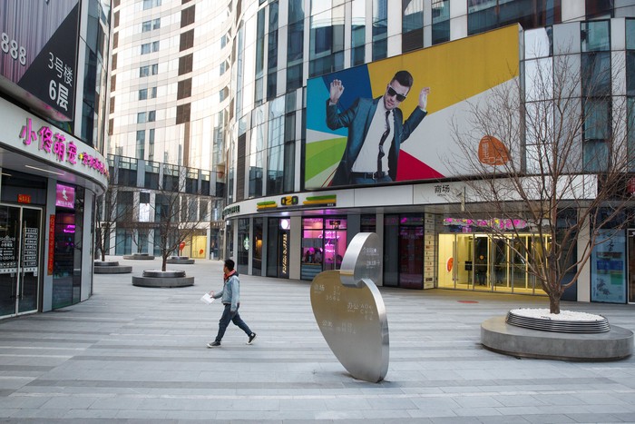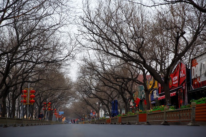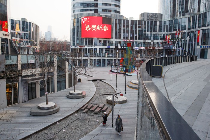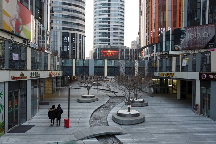 Seperti pusat perbelanjaan Sanlitun yang berada di kota Beijing yang terlihat kosong. Foto: Reuters/Thomas Peter