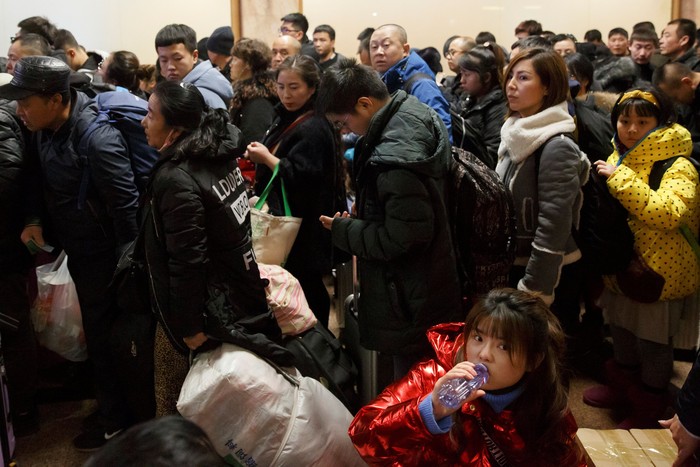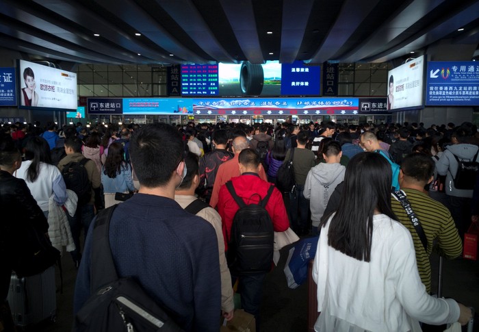 Orang-orang yang bekerja di Shenzhen alias Silicon Valley-nya China pun berbondong-bondong pulang kampung saat Imlek. Foto: Reuters/Stringer