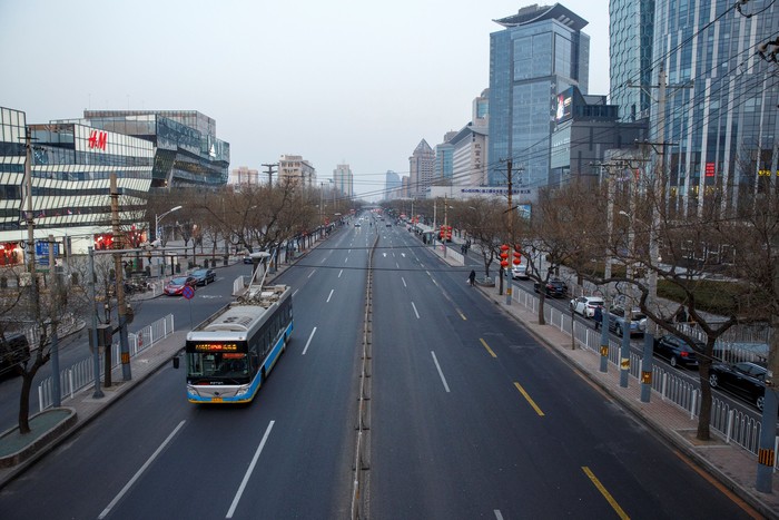 Hal ini pun menjadikan kota-kota besar di China mendadak kosong seperti kota hantu.Β Foto: Reuters/Thomas Peter