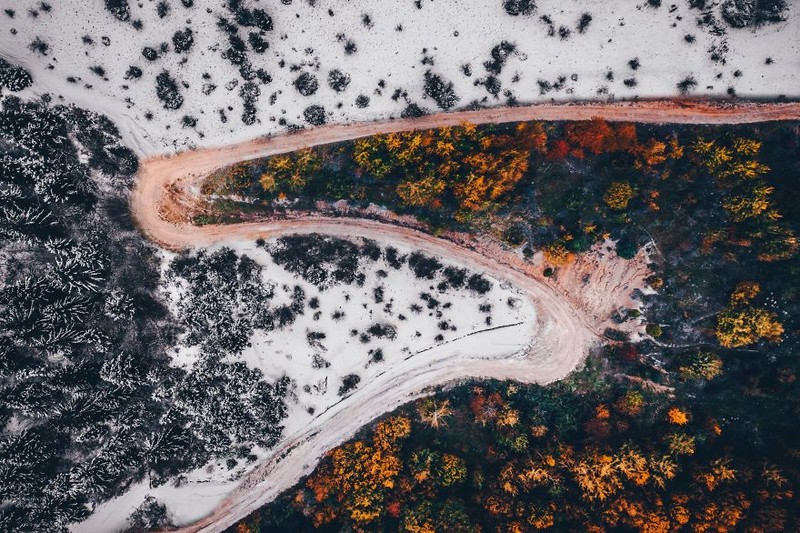 Foto-foto itu diambil oleh fotografer dari dua musim yang berbeda dengan menggunakan drone dan kemudian dikombinasikannya. Istimewa/Dok. Boredpanda.