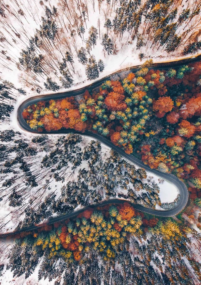 Hasil fotonya nampak memanjakan mata yang melihatnya. Foto itu menampilkan kondisi alam Transylvania dari dua musim berbeda yaitu musim gugur dan musim dingin. Istimewa/Dok. Boredpanda.