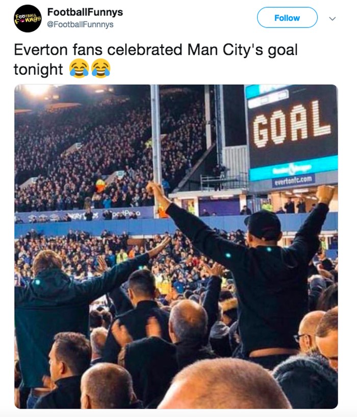 Fans Everton malah merayakan gol City. Foto: istimewa