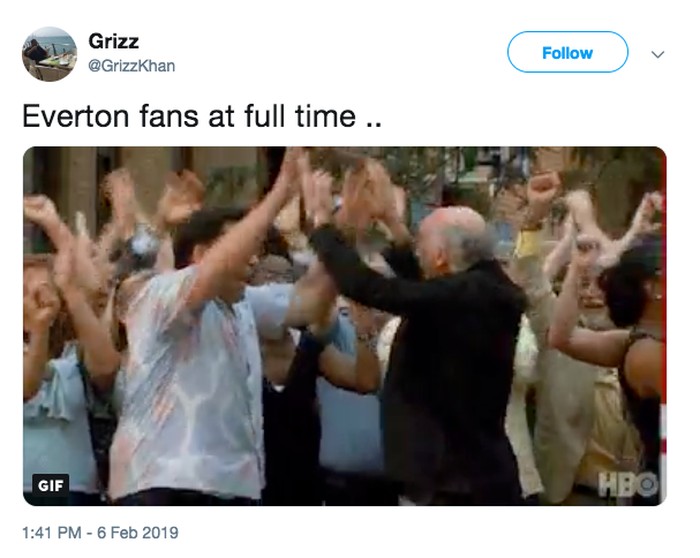 Fans Everton digambarkan malah senang usai timnya dikalahkan 0-2 oleh City. Karena dengan kekalahan itu, Liverpool yang musuh bebuyutan mereka terjungkal di runner up. Foto: istimewa