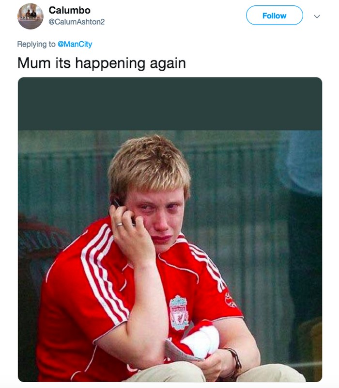 Fans Liverpool digambarkan menangis karena peluang juara kembali terancam. Foto: istimewa
