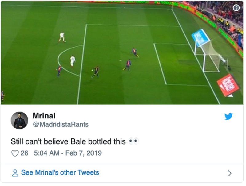 Netizen sukar percaya bisa-bisanya Bale membuang kesempatan emas bikin gol. (Foto: Internet/Twitter)
