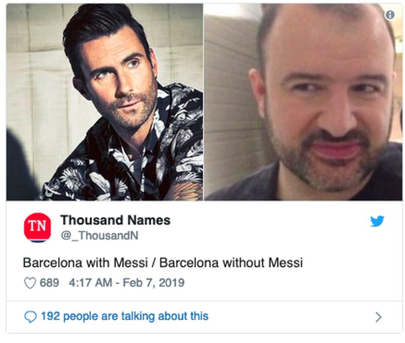 Satu lagi yang menyebut betapa bedanya Barcelona saat ada Messi dibandingkan tanpa si bintang asal Argentina. (Foto: Internet/Twitter)