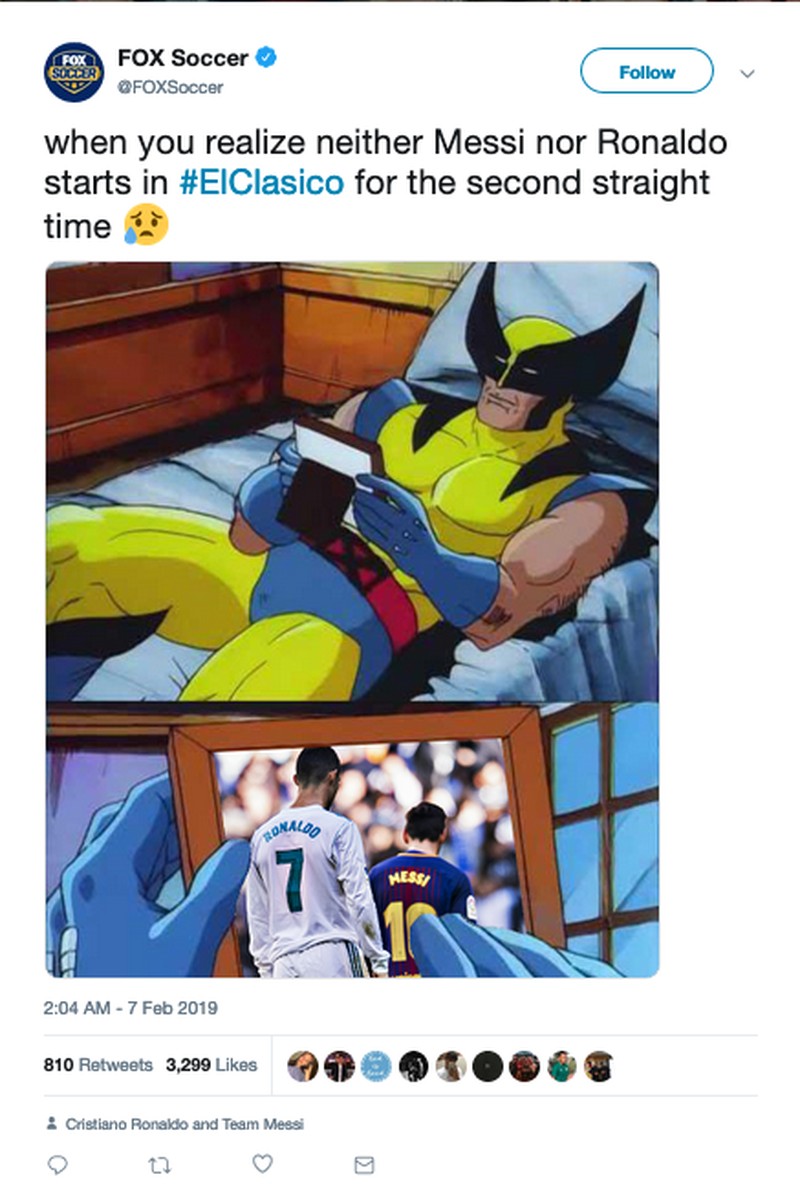 Messi memulai pertandingan dengan duduk di bangku cadangan. Jadi bernostalgia ketika El Clasico ikut melibatkan Messi dan Cristiano Ronaldo deh. (Foto: Internet/Twitter)
