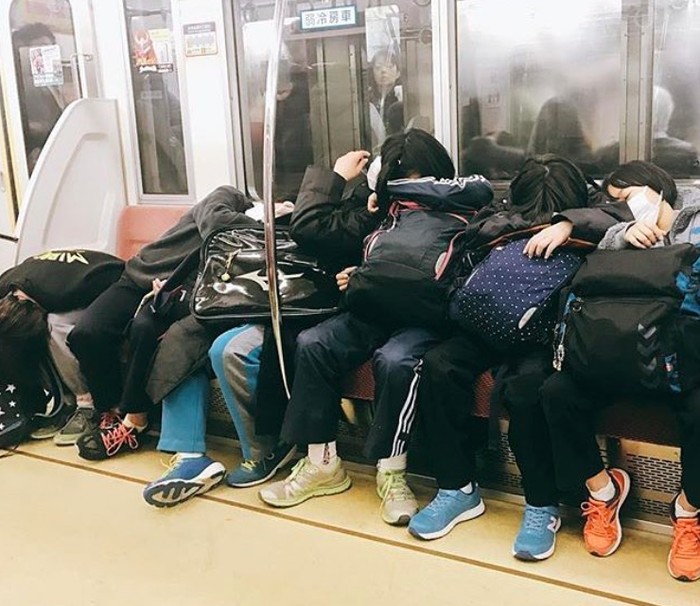 Pemandangan seperti ini adalah hal biasa di kereta perkotaan Jepang. Foto: Instagram