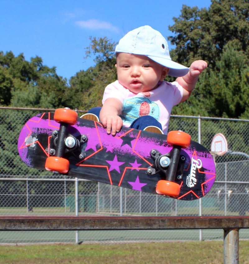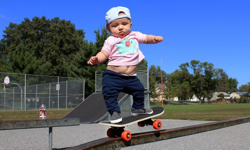 Salah satu foto bayi Ella saat melakukan aksi freestyle bermain skateboard. Istimewa/Dok. Boredpanda.