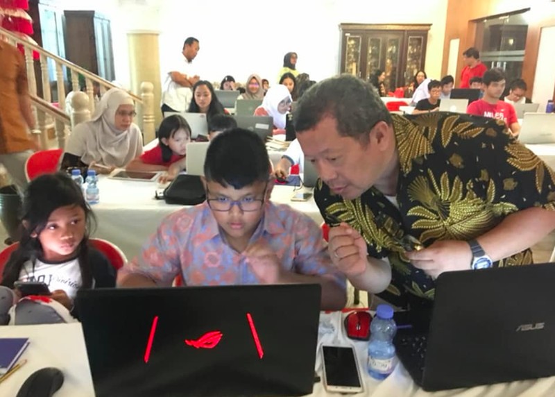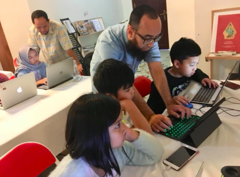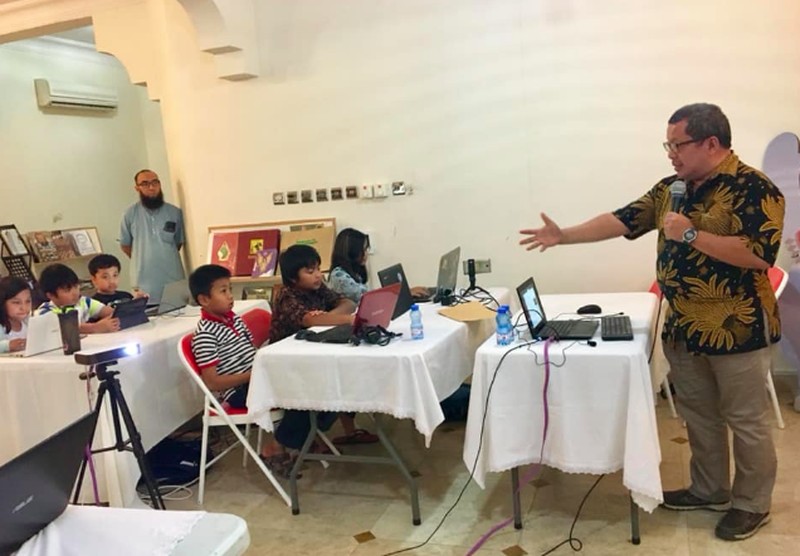 Bertempat di KBRI Muscat, sekitar 30 anak-anak berusia dari 8-12 tahun, belajar membuat aplikasi untuk di smartphone mereka masing-masing, menggunakan MIT App Inventor 2. Foto: KBRI Muscat, Oman