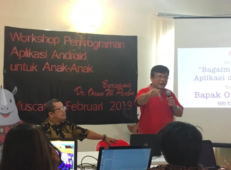 Selain belajar coding membuat aplikasi untuk anak-anak. KBRI Muscat juga menggelar acara ngobrol santai bersama Onno W Purbo. Foto: KBRI Muscat, Oman
