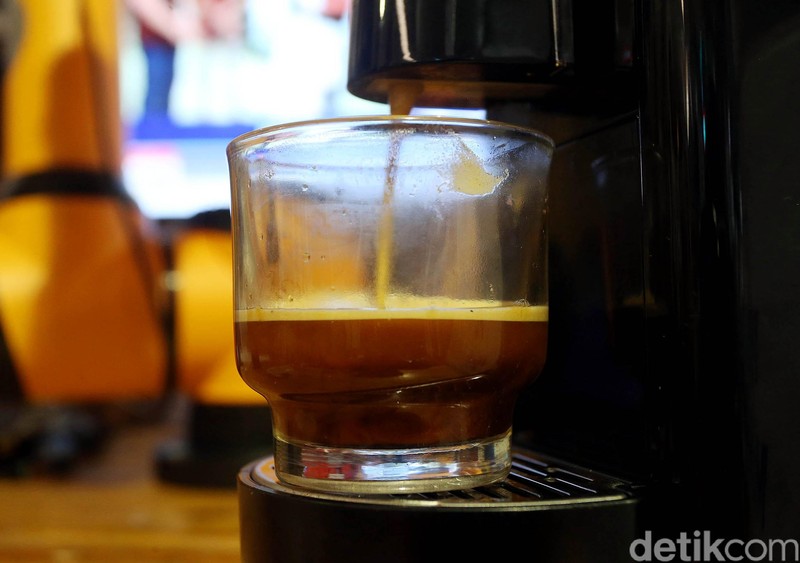 Pengunjung bisa menikmati langsung minuman kopi yang telah dibuat oleh robot barista ini.
