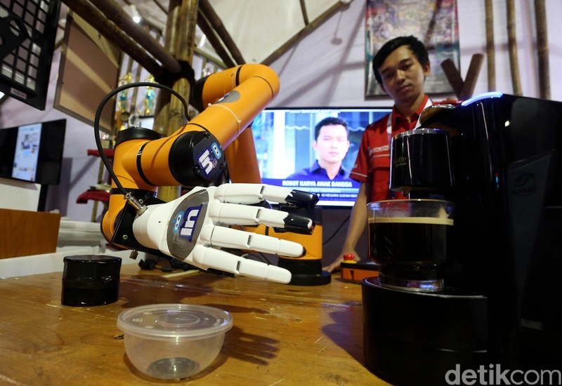 Robot pembuat kopi ini merupakan hasil karya dari LKP Sari Teknologi.