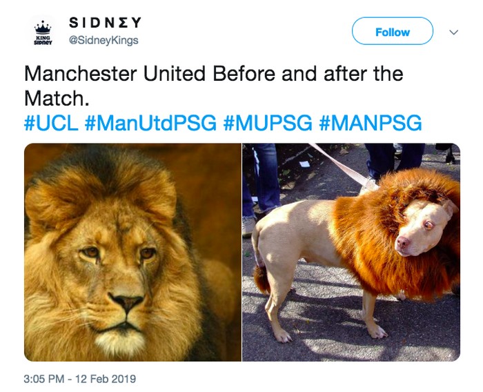 Awalnya singa yang garang mendadak lembek setelah dilibas PSG. Foto: istimewa