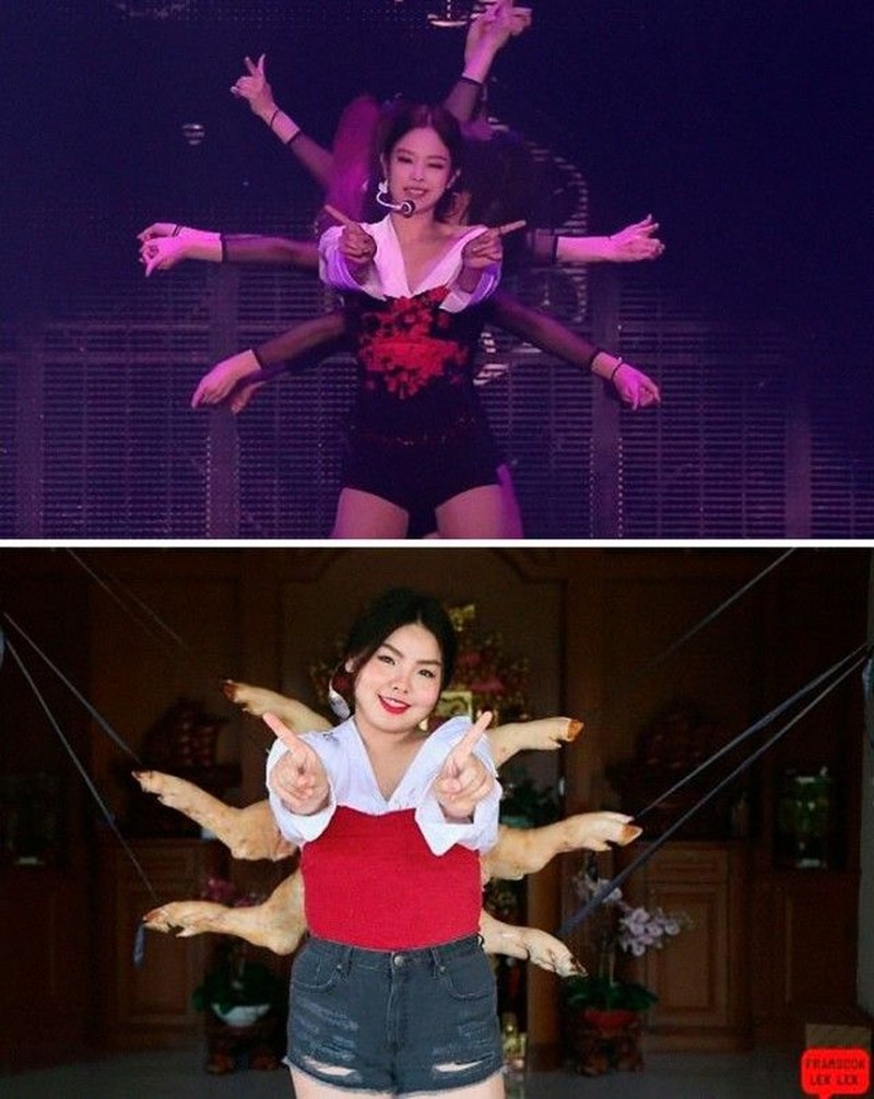 Mengikuti gaya model Guest menggunakan sosis. Foto: instagram.com/framsook_lek_lek/