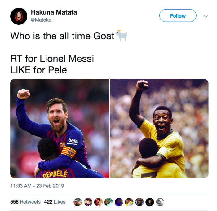 Netizen pun ada yang menggelar polling, di sini Messi versus Pele. Hasilnya, Messi meraih suara lebih banyak. Foto: istimewa