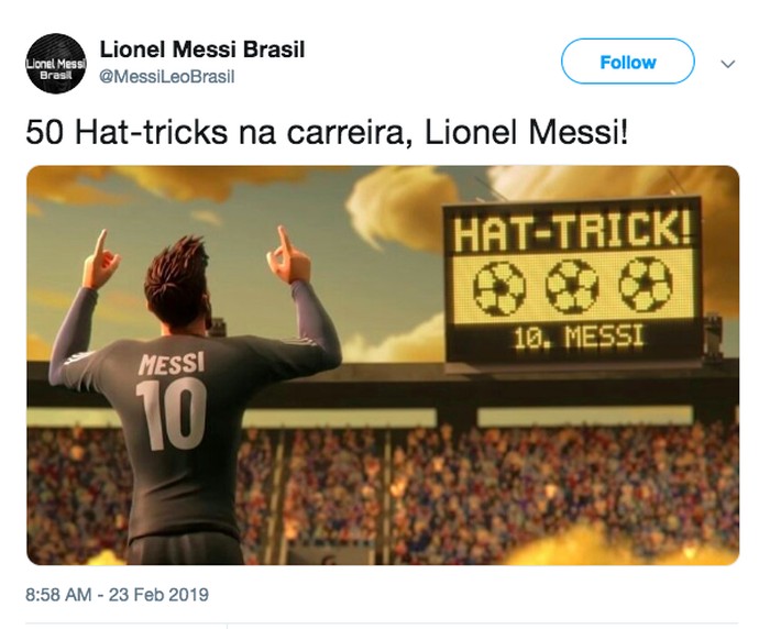 Gambar Messi dengan tiga gol, lambang hattrick, yang diposting seorang netizen. Foto: istimewa