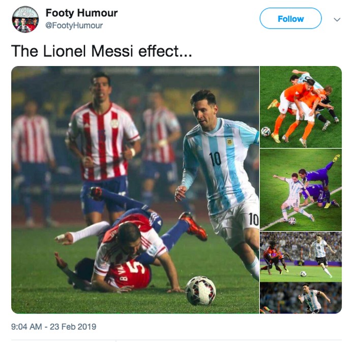 Koleksi foto yang menunjukkan kelihaian Messi memperdaya bek lawan. Foto: istimewa