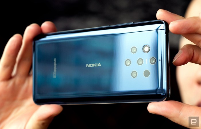 Nokia 9 Purevies sebagai smartphone pertama dengan lima kamera belakang di dunia. Kelima kamera itu sendiri seluruhnya mengusung lensa Carl Zeiss. Foto: Chris Velazco/Engadget